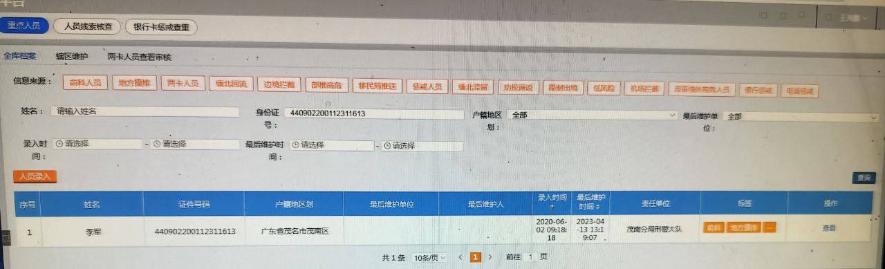 根据个人护照号查身份证号码,关联户籍其他亲属信息
